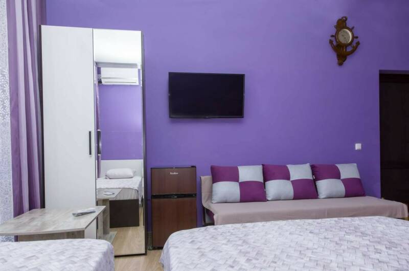 В гостевом доме мы приготовили для вашего размещения номера категорий «Стандарт». Все они прекрасно оборудованы, в них есть телевизоры, кондиционеры, холодильники, санузлы находятся в номере. Работает WI-FI интернет. Холодная и горячая вода круглосуточно.